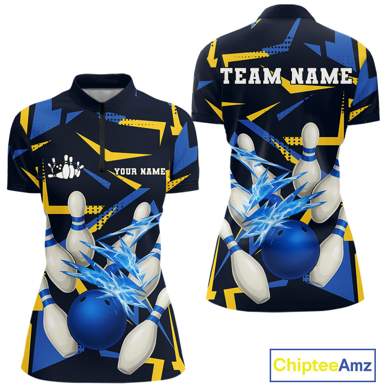 Personalized Blue & Yellow camo lightning thunder Bowling Shirts For Women Custom Bowling Team jersey NQS10305