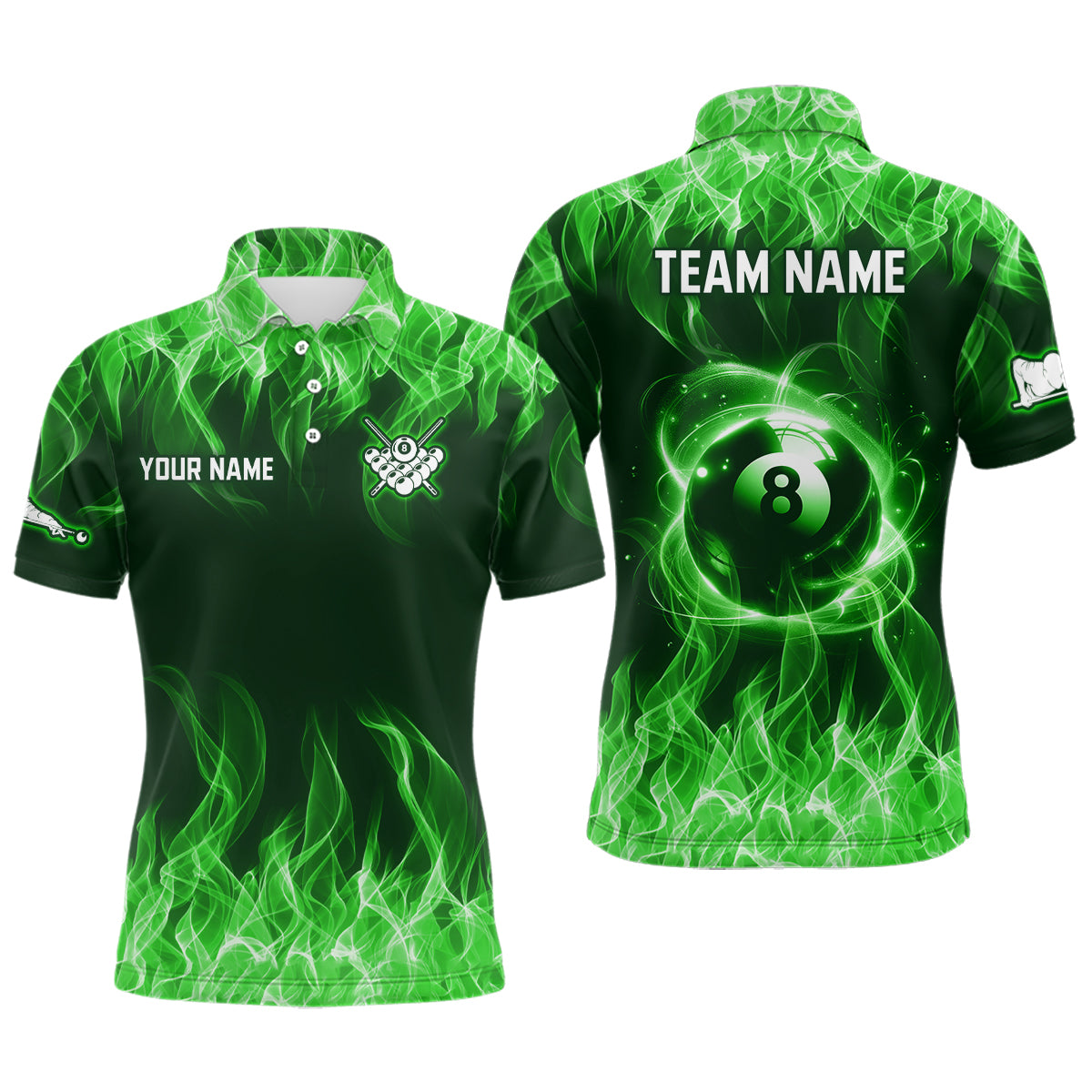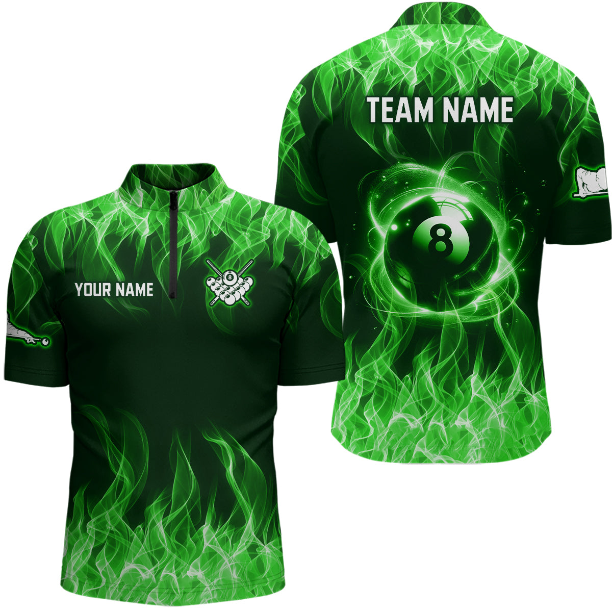 Green Flaming 8 Ball Pool Shirts Men Billiard Polo & 1/4 Zip Shirts Billiard Team Jerseys NNT10