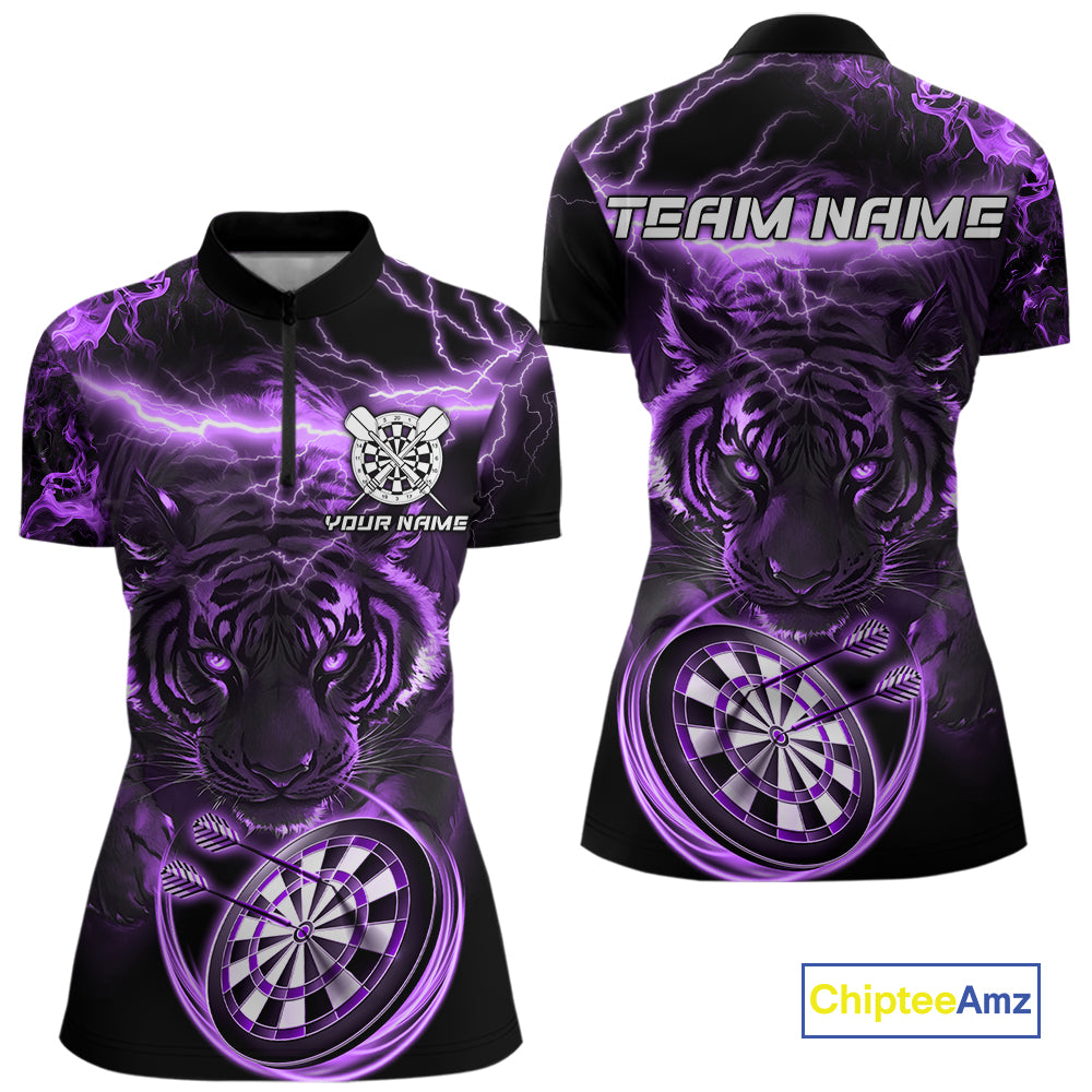 Personalized Purple Lightning Thunder Storm Tiger Darts Shirts For Women Custom Dart Team Jerseys NQS10440
