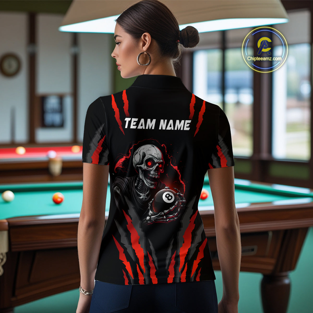 Personalized Skull Billiard Team Jerseys Billiard Shirts for Women Polo & 1/4 Zip Shirts NNT43