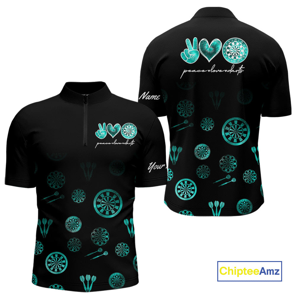 Personalized Turquoise Black Camo Darts Shirts For Men Custom Peace Love Darts Team Jerseys NQS10542
