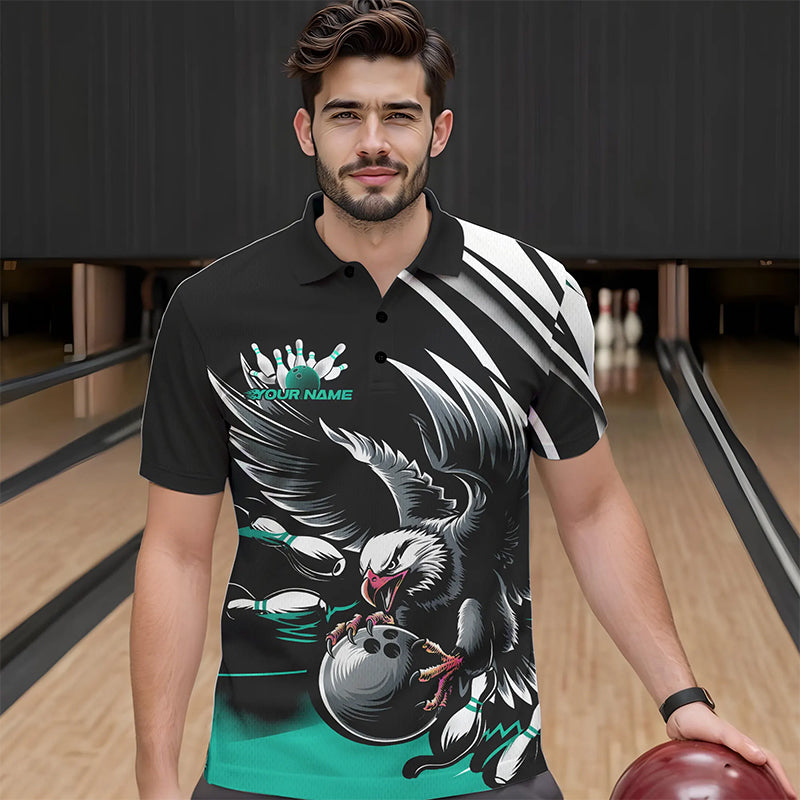 Custom Black And Blue Eagle Bowling Jerseys, Bowling Team Men Polo Shirts Bowlers Outfits IPHW8887
