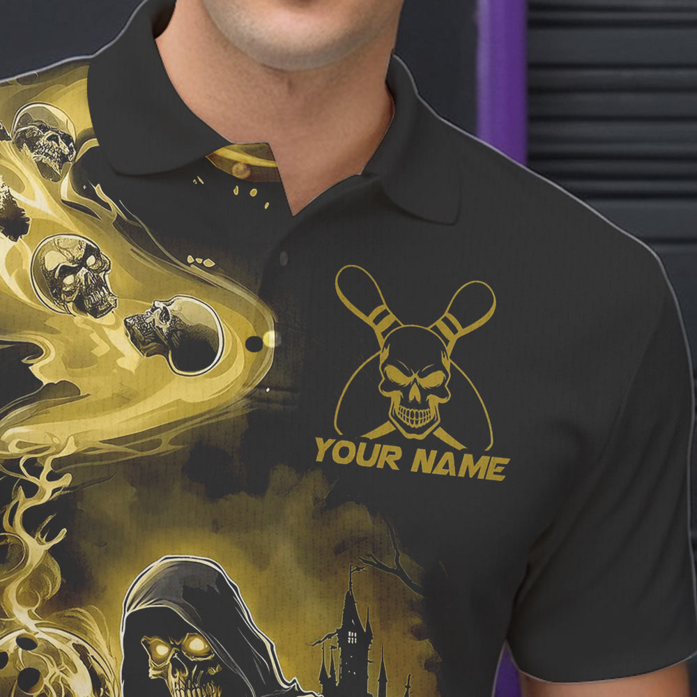 Black And Yellow Grim Reaper Custom Halloween Bowling Team Men Polo Shirts, Bowlers Outfit IPHW8894