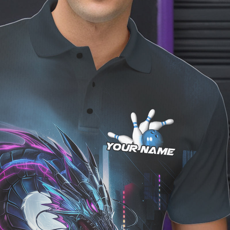 Custom Futuristic Style Dragon Bowling Polo Shirts For Men, Dragon Bowling Outfits IPHW8914