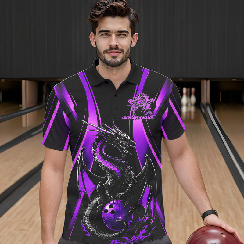 Custom Purple Dragon Bowling Jerseys, Dragon Bowling Men Polo Shirts Bowling League Shirt IPHW8928