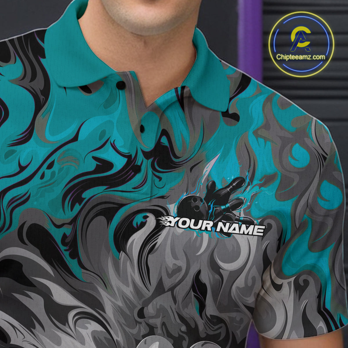 Custom Blue Fame Bowling Team Polo Shirts For Men, Fire Bowling Jerseys IPHW9560