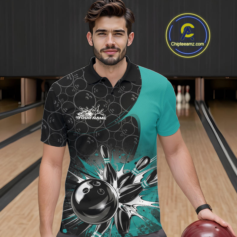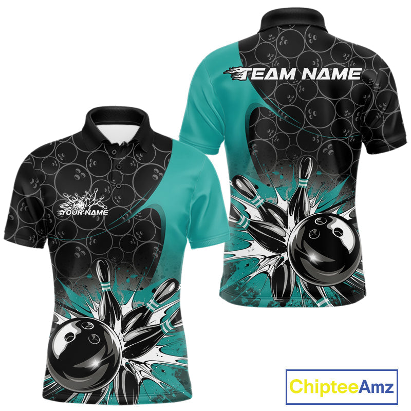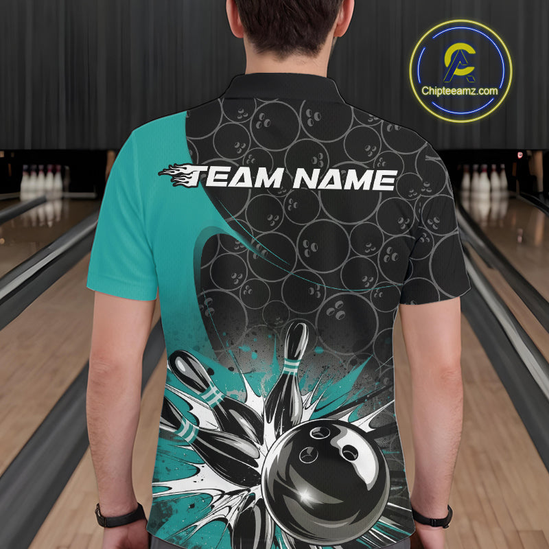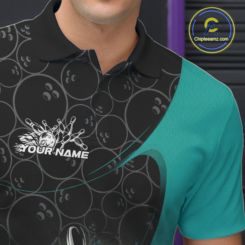 Custom Blue Bowling Team Polo Shirts For Men, Bowling Pattern Bowling League Shirt IPHW9625