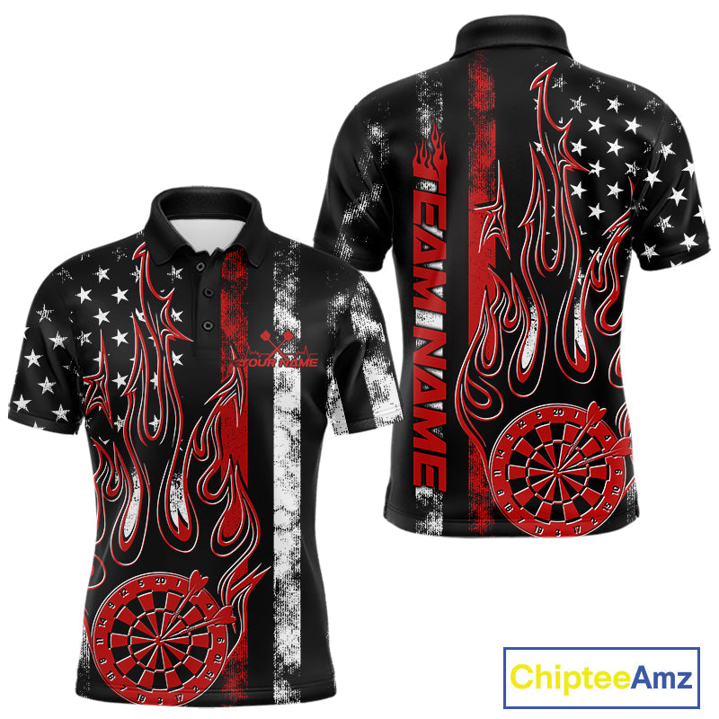Custom Red Thin Line US Flag Patriotic Flame Dartboard Dart Men Polo Shirts, Dart Jerseys IPHW9639