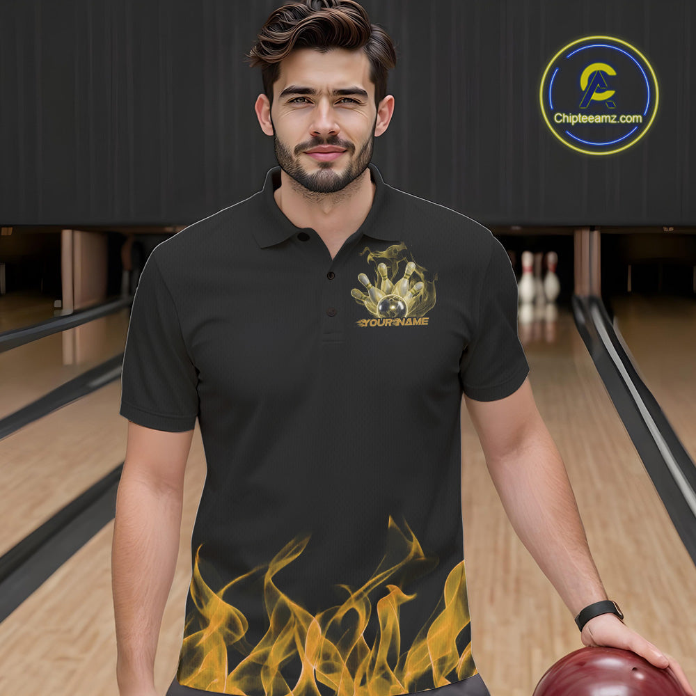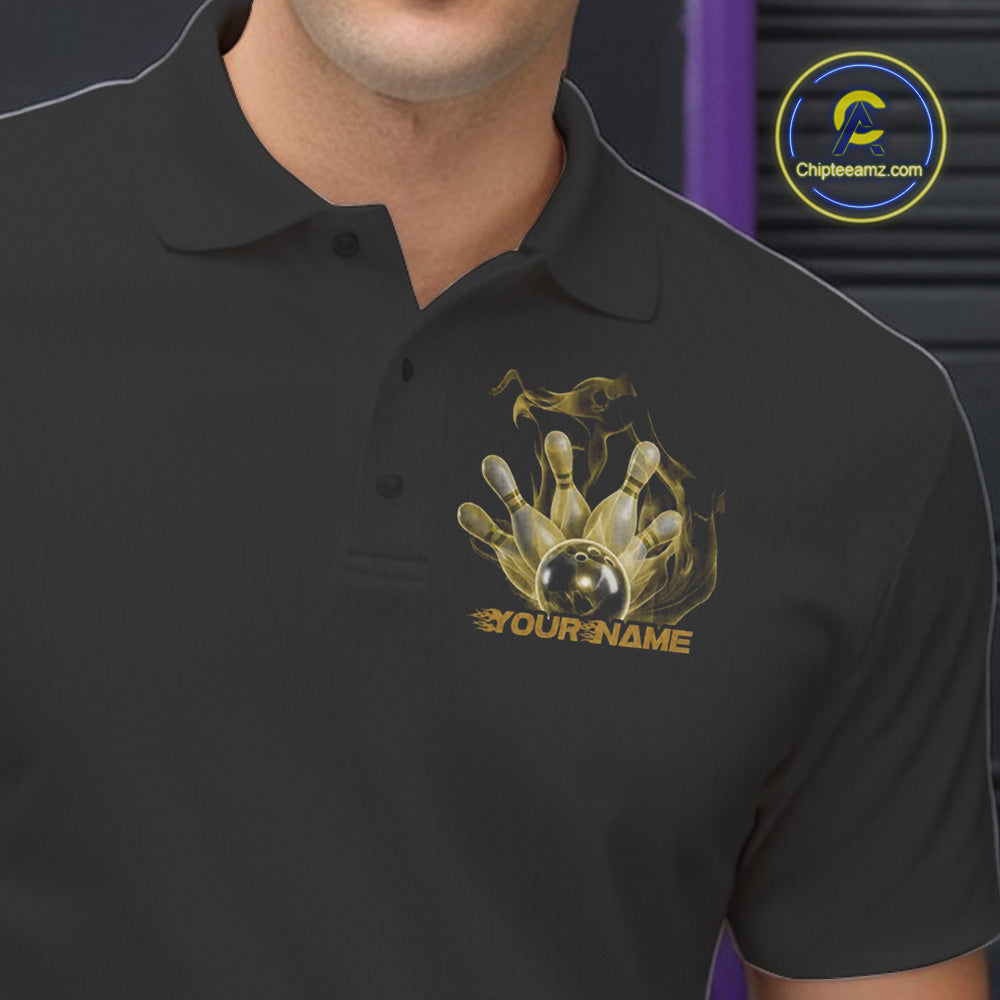 Custom Yellow Skull Smoke Bowling Team Men Polo Shirts, Halloween Bowling Outfit IPHW9776