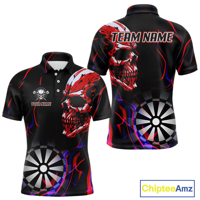 Red Skull And Dartboard Custom Darts Polo Shirts For Men, Darts Jersey NYN0776