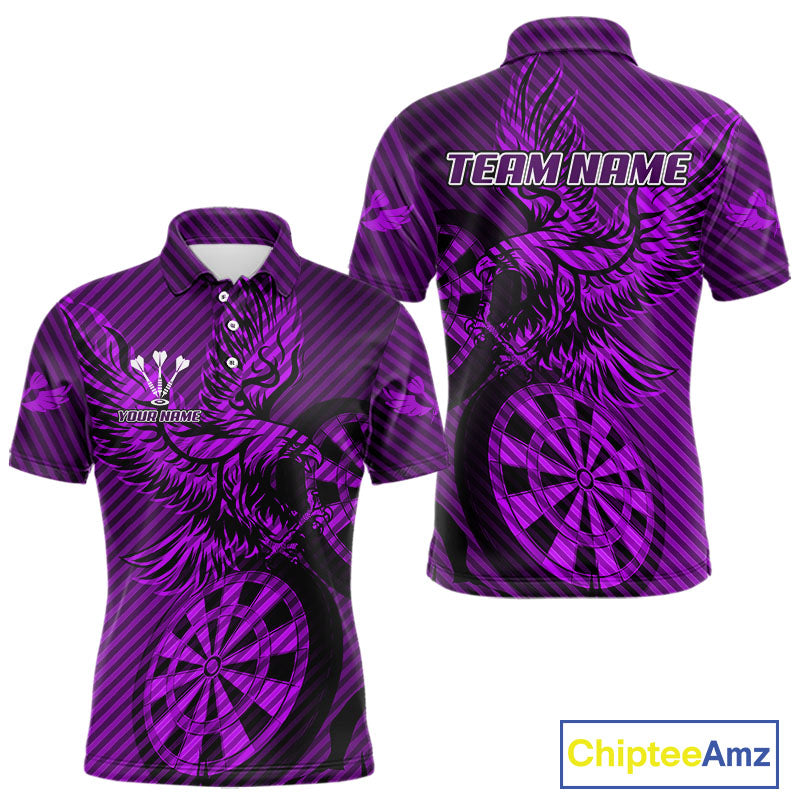 Custom Eagle & Dartboard Purple Stripes Dart Polo Shirts For Men, Dart Team Jerseys NYN0784