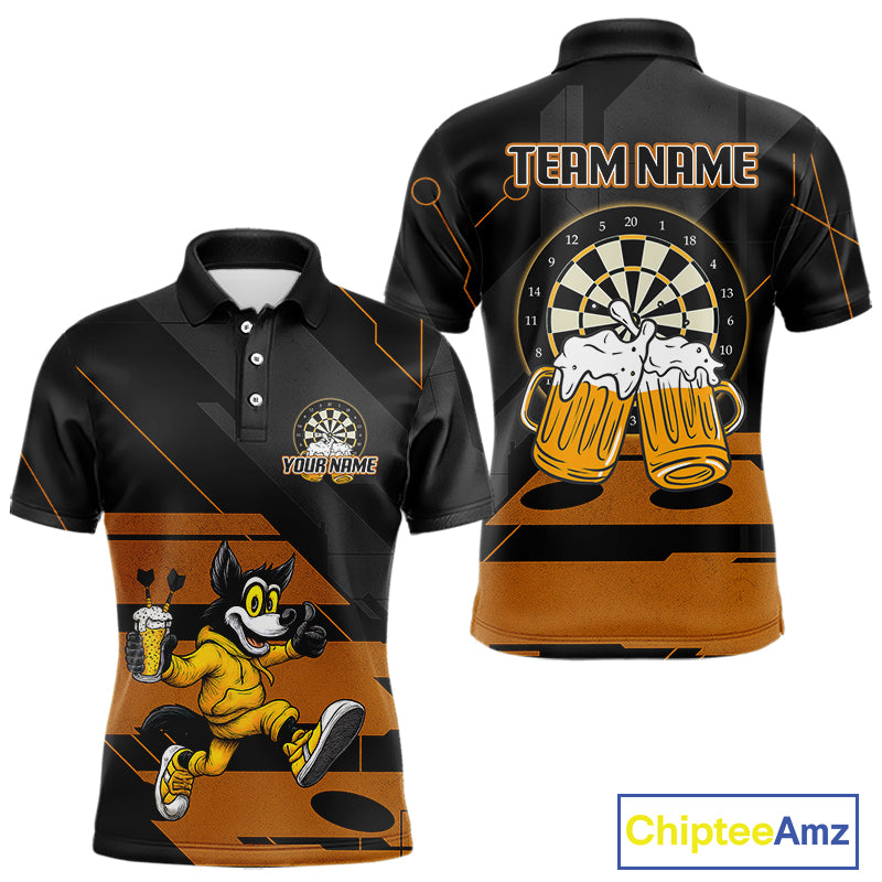 Wolf Play Darts & Beer Custom Funny Dart Polo Shirts For Men, Dart Team Jerseys NYN0797