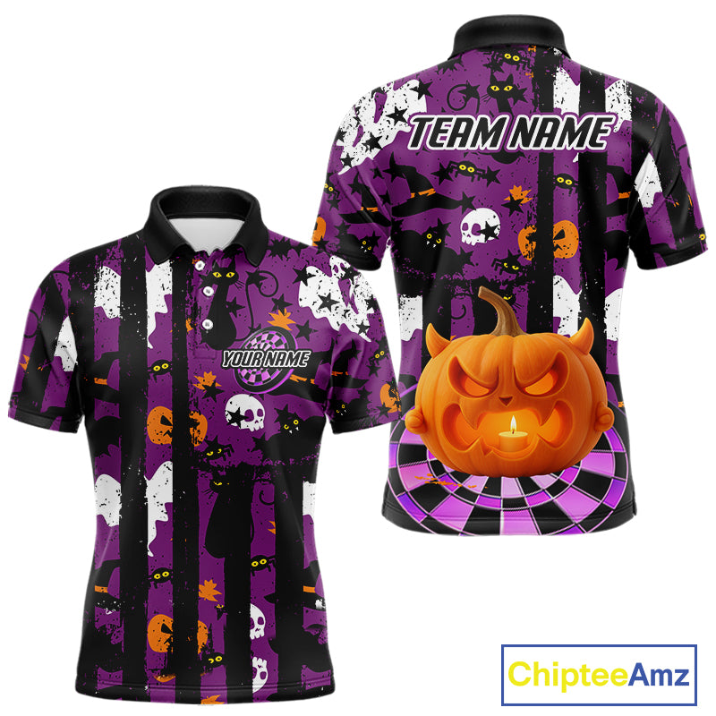Pumpkin & Dartboard Custom Funny Halloween Dart Polo Shirts For Men, Dart Team Jerseys NYN0806