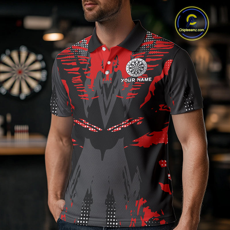 Silver Dartboard Red Grunge Polo Dart Shirt For Men Personalized Outfits Darts Team Jerseys NYN0854