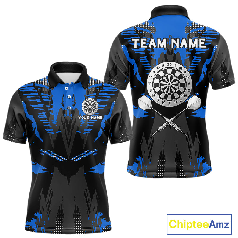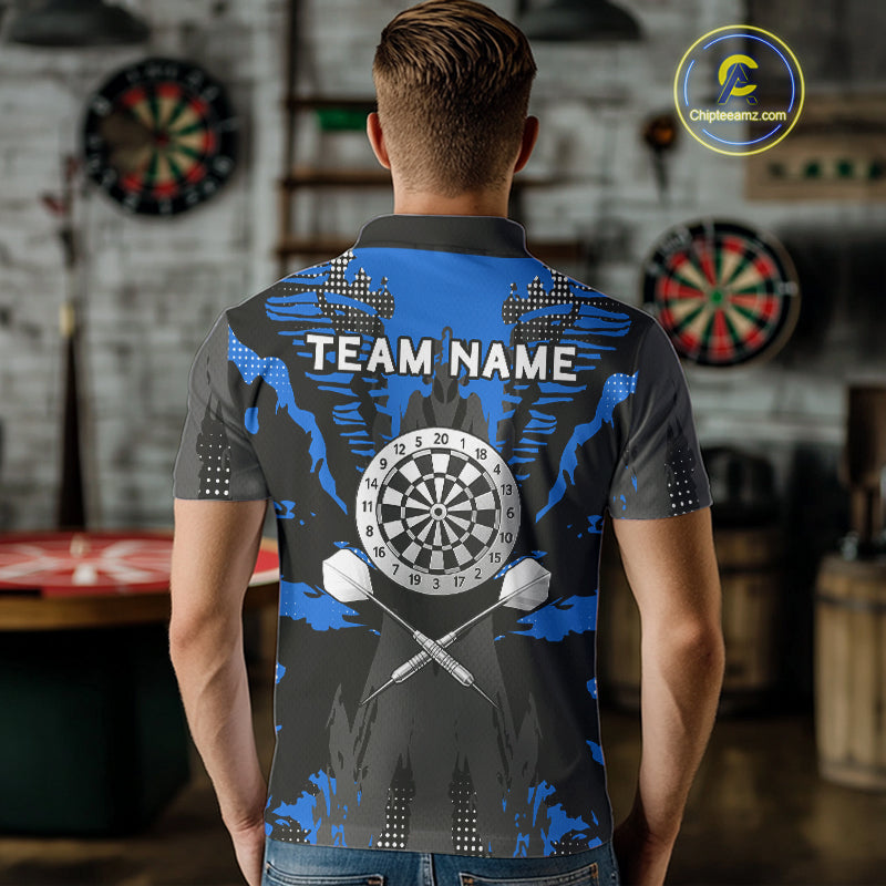 Silver Dartboard Blue Grunge Polo Dart Shirt For Men Personalized Outfits Darts Team Jerseys NYN0855