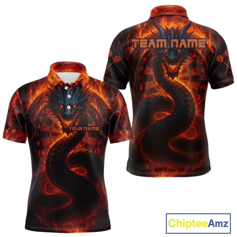Personalized Red Flames Dragon Dartboard Darts Polo Jerseys For Men, Dart Team Jerseys NYN0963