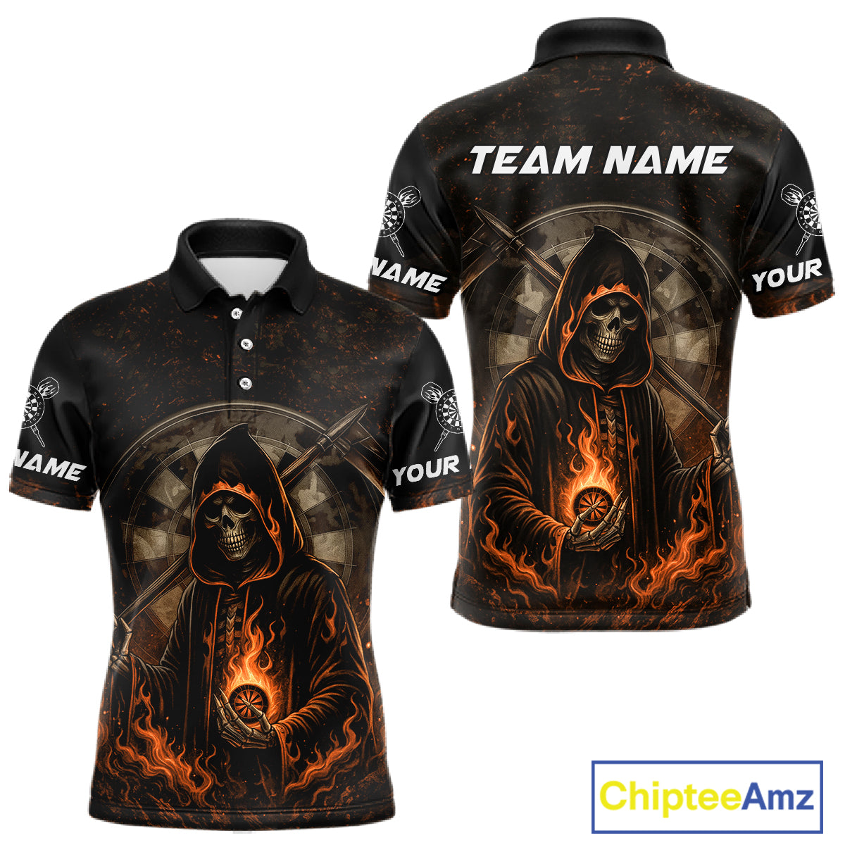 Custom Black-Orange Flames Skull Dartboard Darts Polo Jerseys For Men, Darts Fan Uniform NYN0986