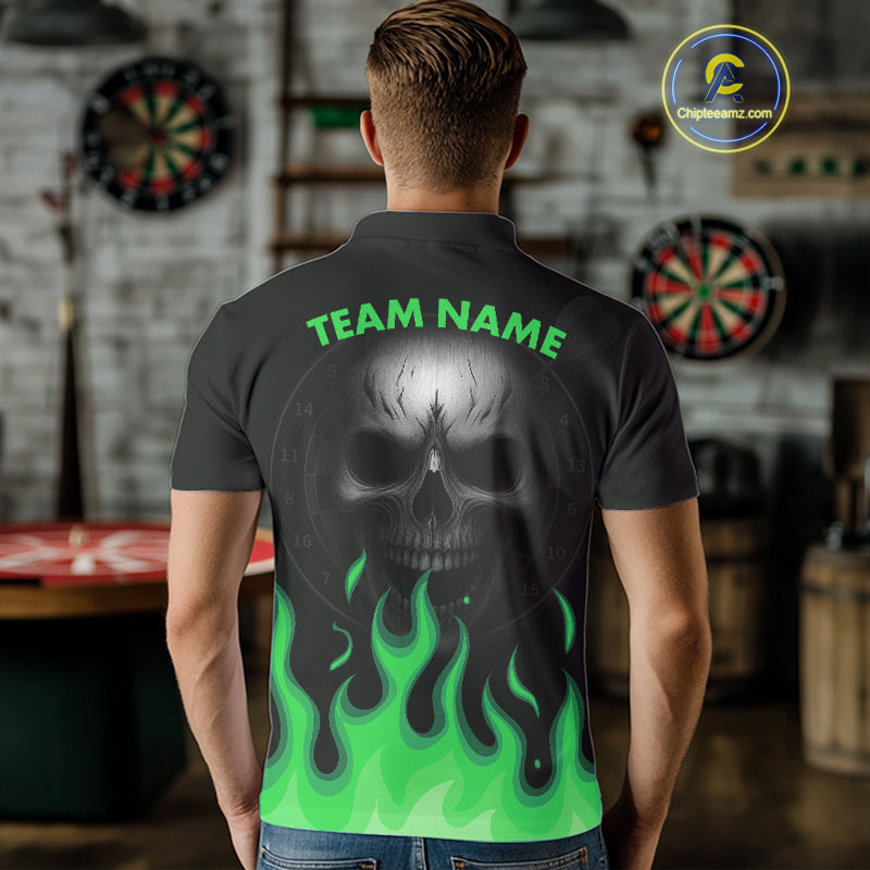 Custom Green Flames Skull Dartboard Polo Darts Shirt For Men Outfit Dart Team Jersey NYN0995