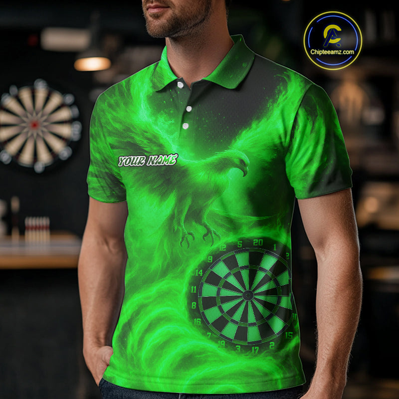 Men's Darts Polo Shirt Personalized Flaming Phoenix Dartboard Darts Jersey | Green NYN1027