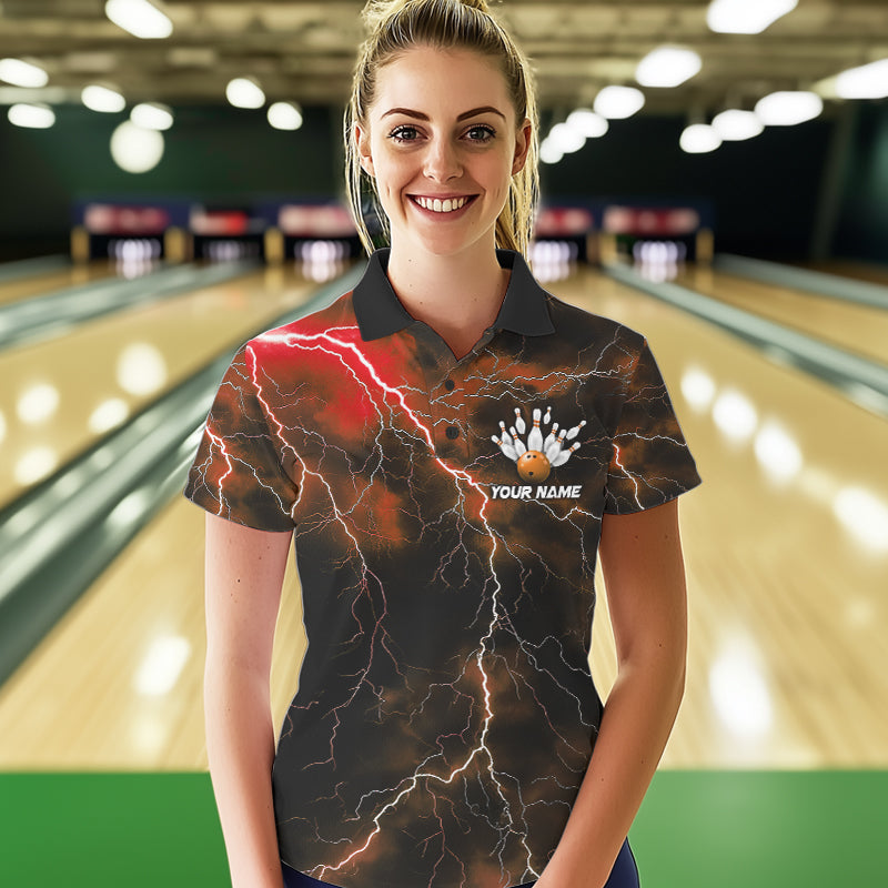 Orange Thunder Lightning Custom Cobra Snake Bowling Women Polo Shirts, Bowling Team Shirt IPHW8897