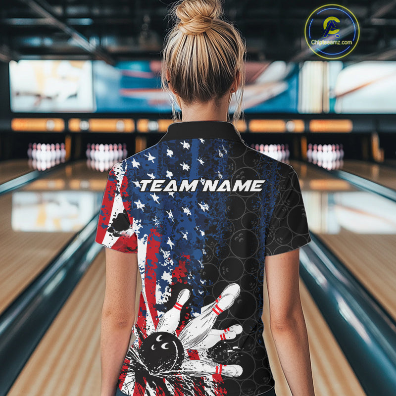 Custom Grunge Vintage American Patriotic Bowling Team Jerseys, Bowling Women Polo Shirt IPHW9489