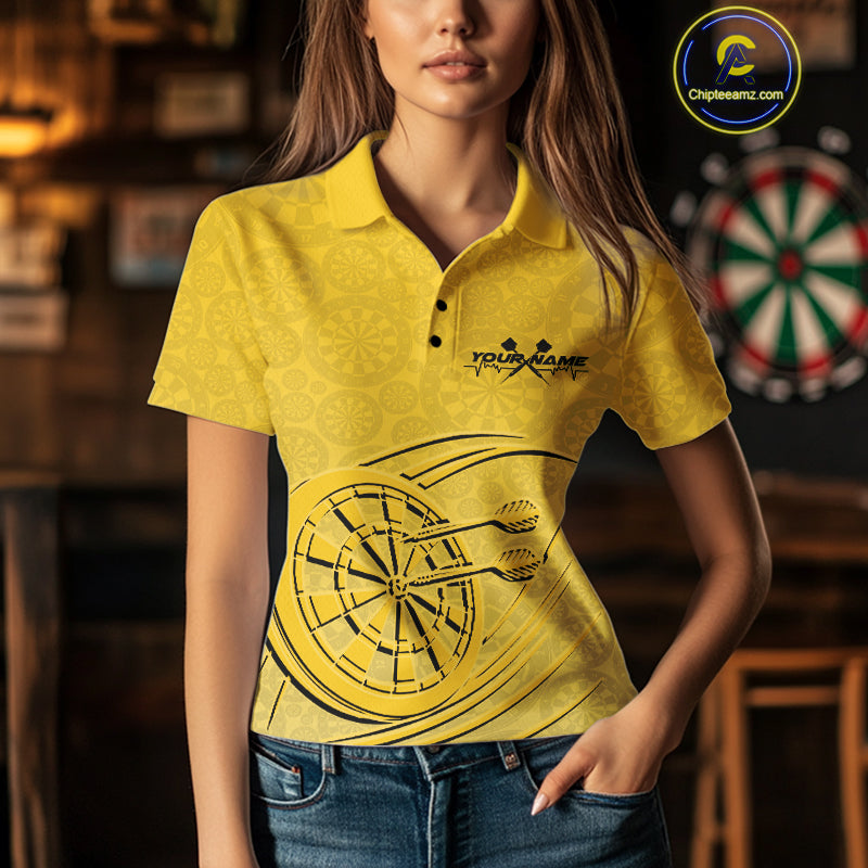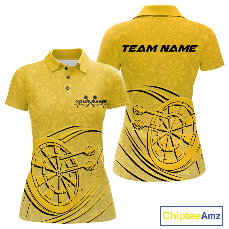 Custom Yellow Darts Polo Shirts For Women, Yellow Dartboard Dart Team Jerseys For Players IPHW9637