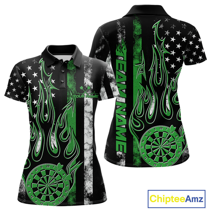 Custom Green Thin Line US Flag Patriotic Flame Dartboard Women Polo Shirt, Dart Jersey IPHW9641