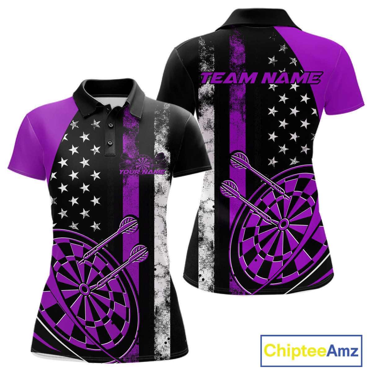 Custom Purple Thin Line US Flag Patriotic Dartboard Women Polo Team Shirt, Dart Jersey IPHW9647