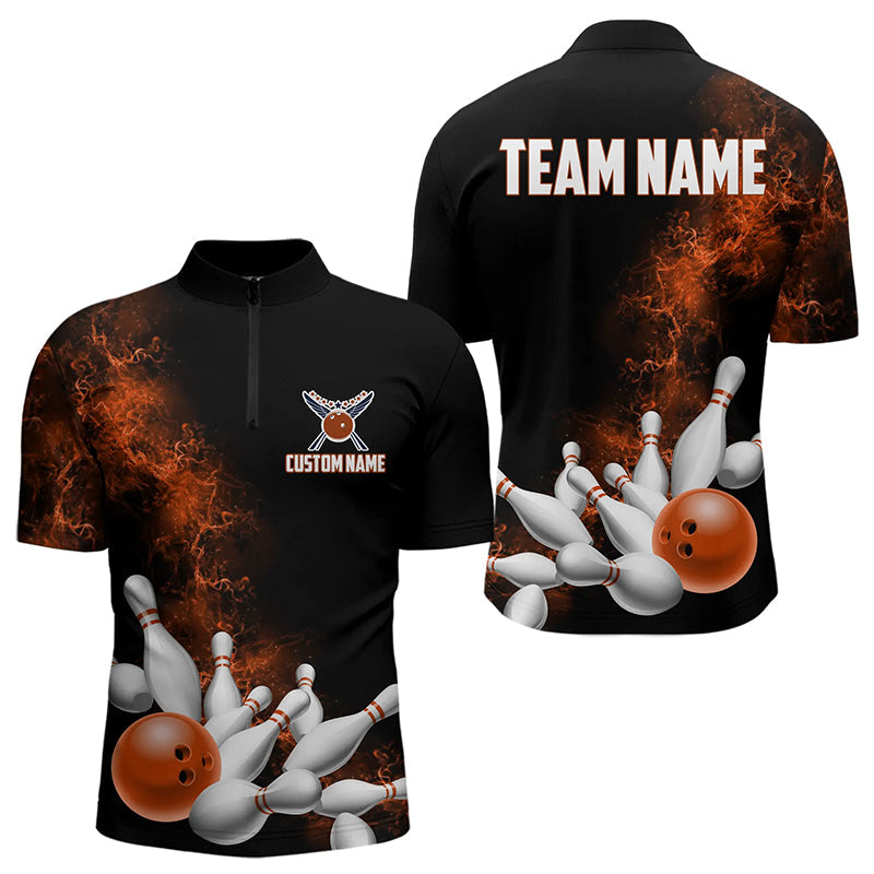 Custom Orange Bowling Quarter-Zip Shirts For Men Bowling Team Jerseys Bowling League Shirts IPHW8881