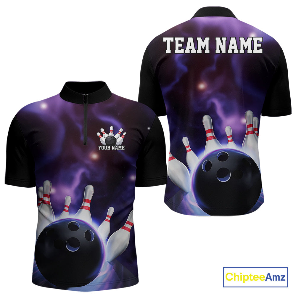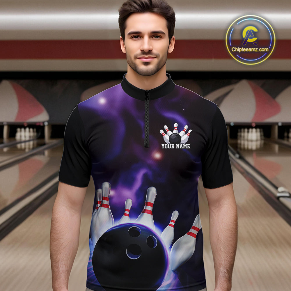 Custom Galaxy Bowling Quarter-Zip Shirts For Men, Cosmic Bowling Team Jerseys IPHW9503