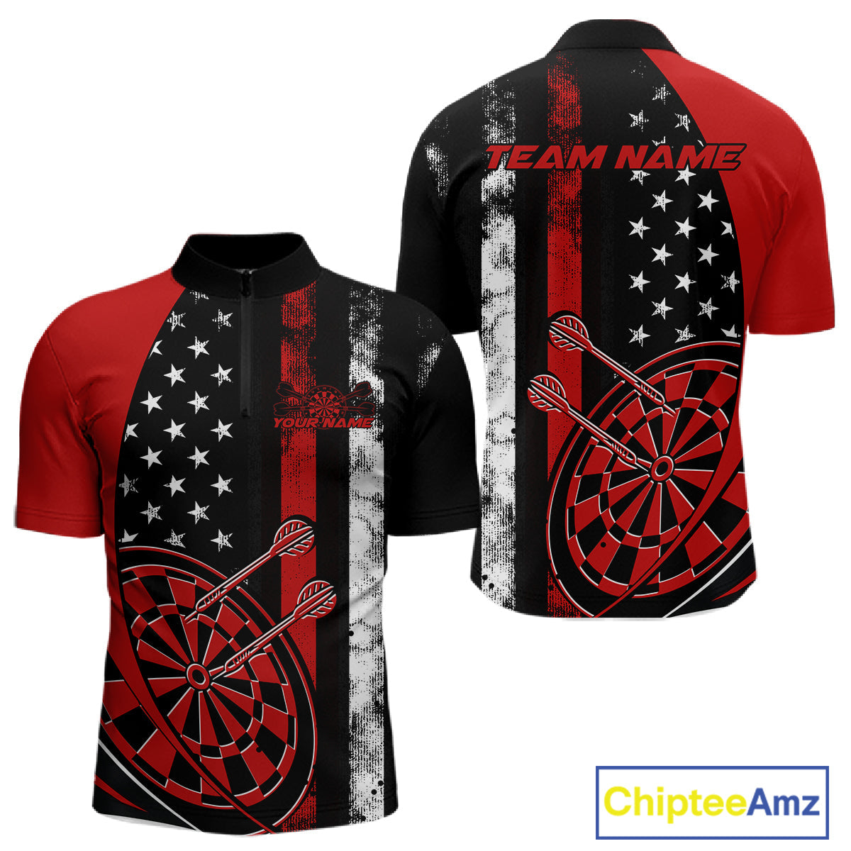 Custom Red Thin Line US Flag Patriotic Dartboard Dart Men Quarter-Zip Team Shirts, Dart Jerseys IPHW9644