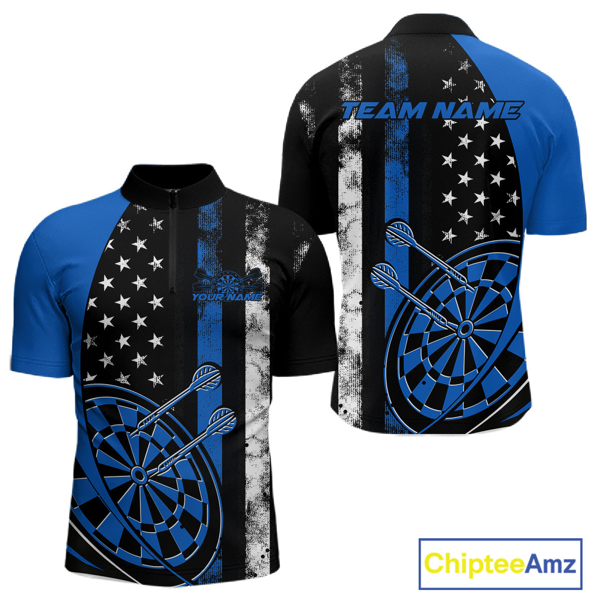 Custom Blue Thin Line US Flag Patriotic Dartboard Dart Men Quarter-Zip Team Shirts, Dart Jerseys IPHW9645