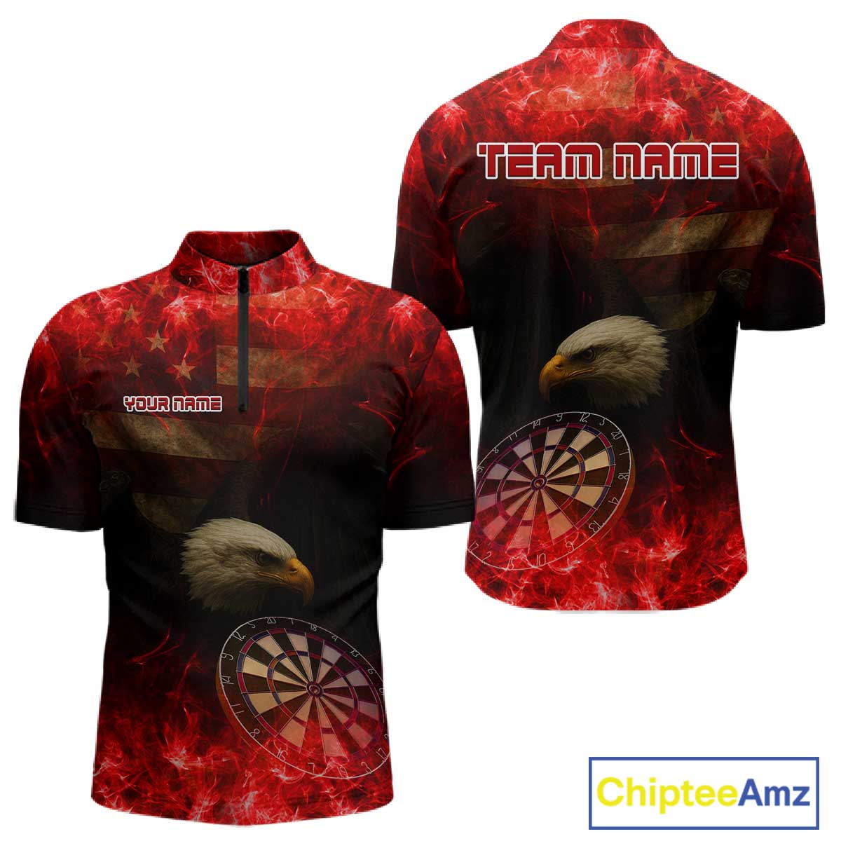 Custom Black And Red Flames Eagle Dartboard Darts 1/4-Zip Shirt For Men Outfit Darts Jerseys NYN0944