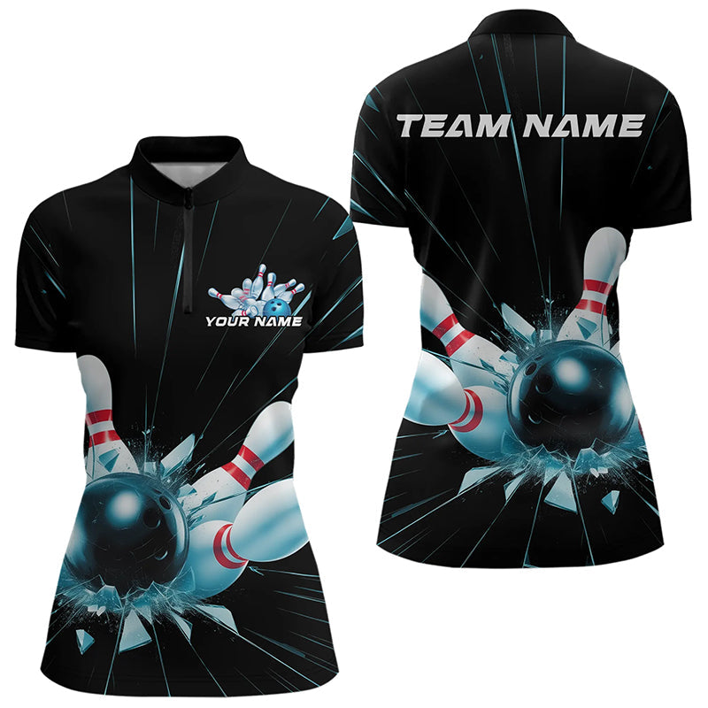 Custom Break Glass Bowling Quarter-Zip Shirts For Women, Bowling League Shirt Team Uniform IPHW8900