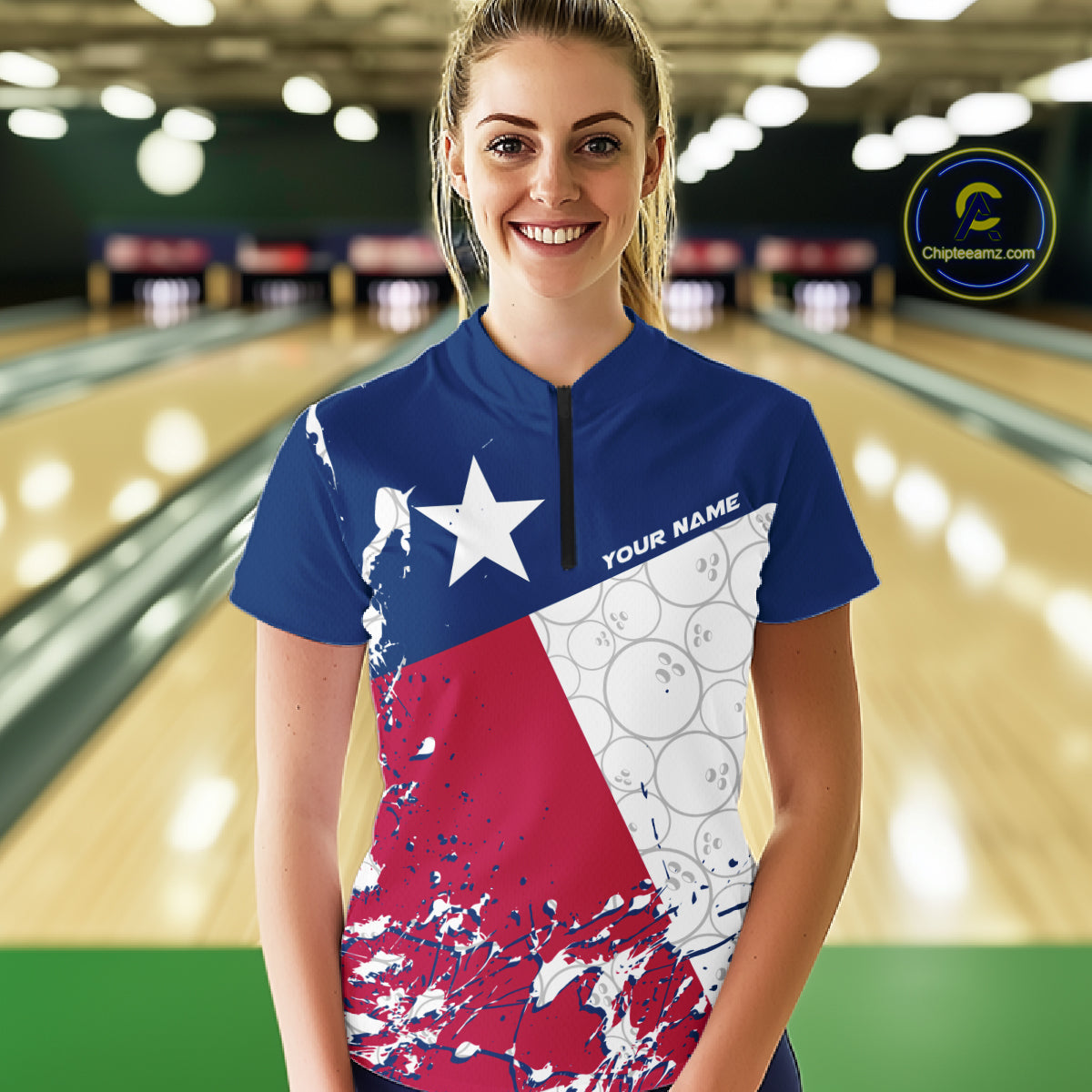 Custom Texas Flag Bowling Women Quarter-Zip Shirts, Bowling League Shirt Team Uniform IPHW9632