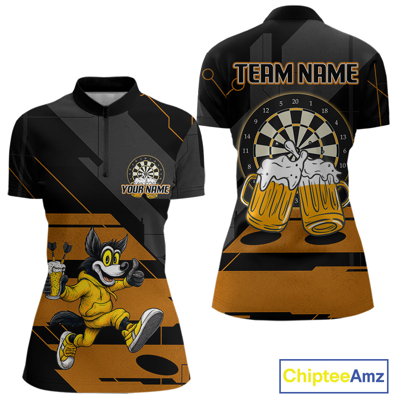 Wolf Play Darts & Beer Custom Funny Dart 1/4-Zip Shirts For Women, Dart Team Jerseys NYN0797
