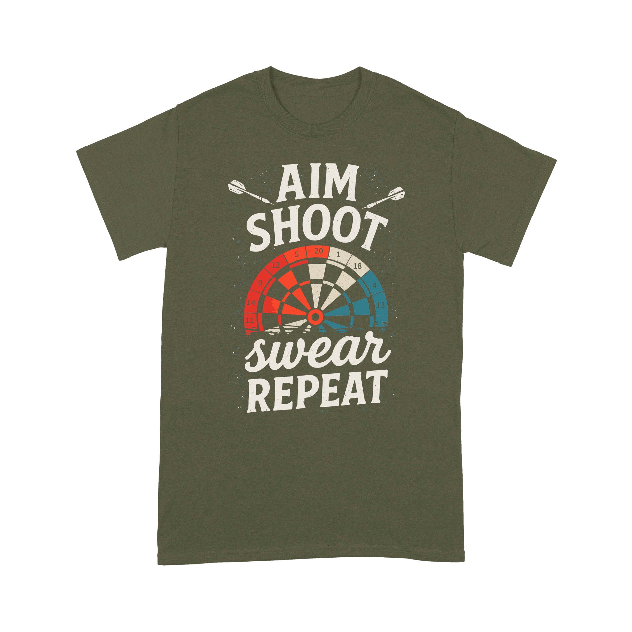 Aim Shoot Swear Repeat Funny Grunge Darts T-Shirts, Darts League Shirts, Darts Player Gifts TDM3905