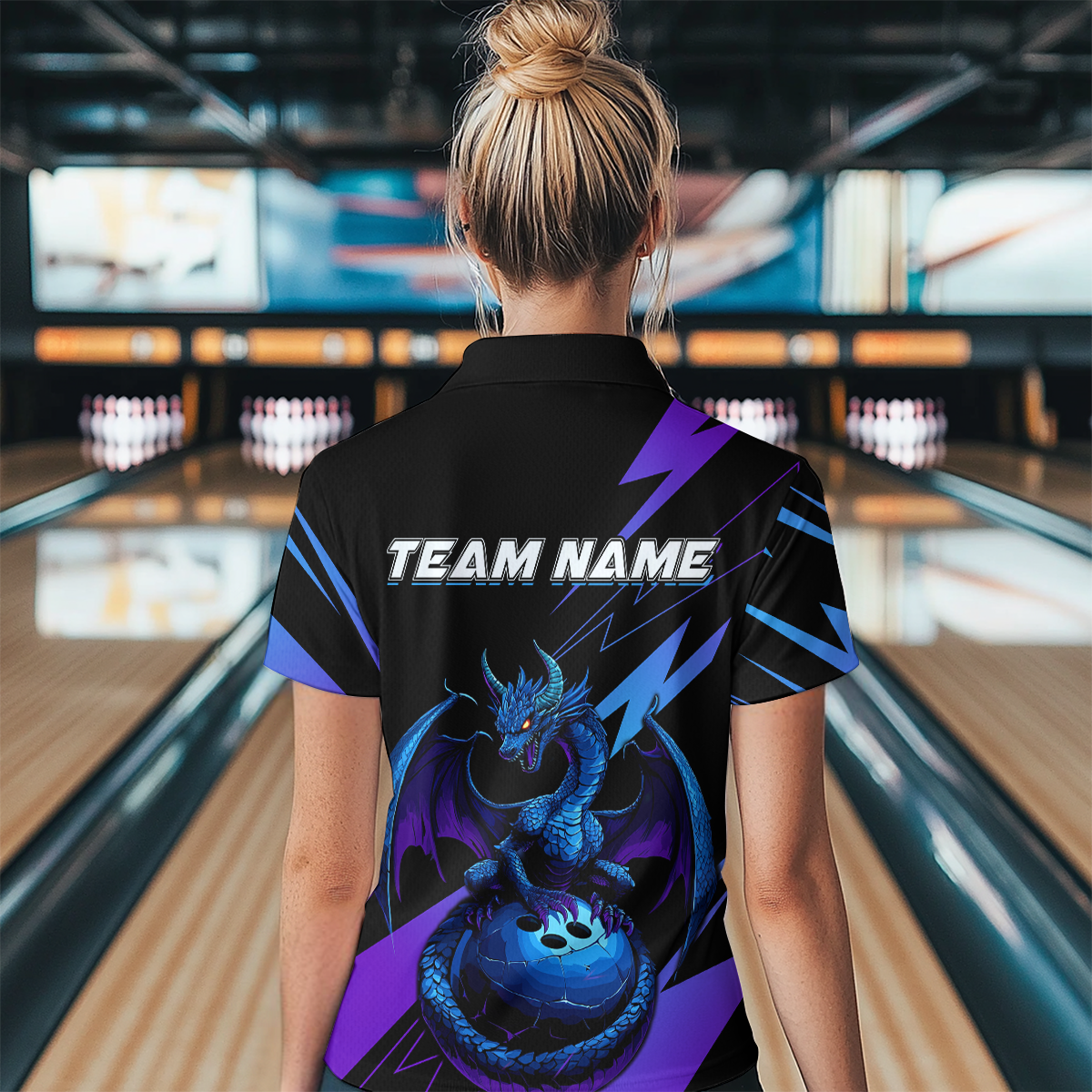 Teal And Purple Dragon Bowling Shirt Custom Name Bowling Jersey Team Bowling Polo Shirts QZT674