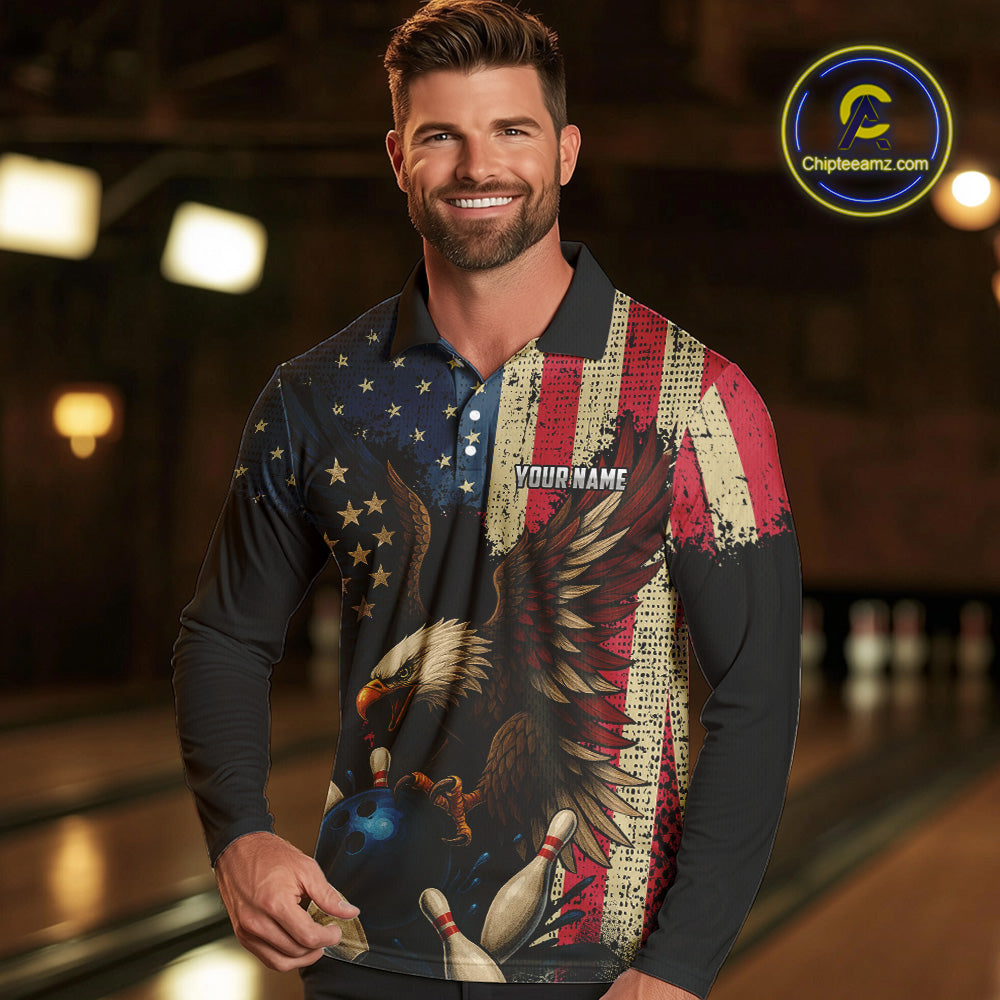 Vintage American Flag Eagle Bowling Shirt For Mens Custom Patriotic Retro Team bowling jerseys NQS10475