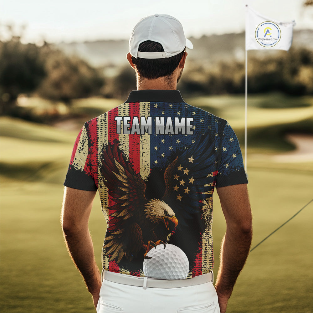 Vintage American Flag Eagle Mens Golf Polo Shirt Custom Patriotic Retro Team golf attire for men NQS10476