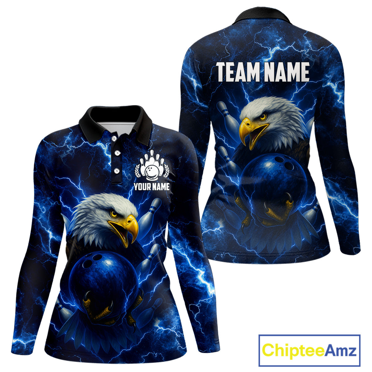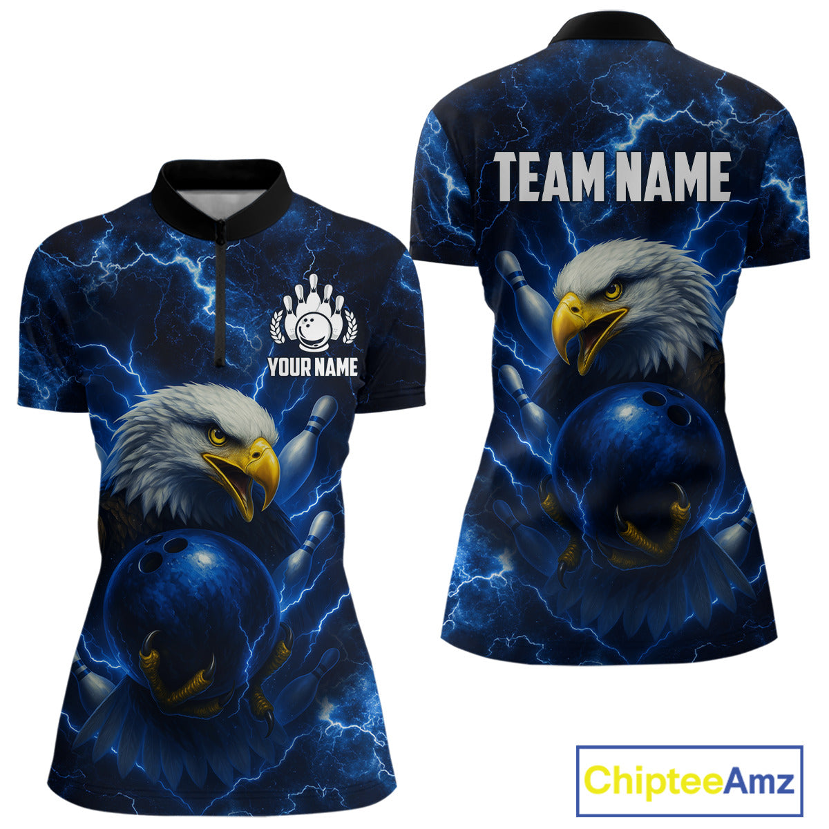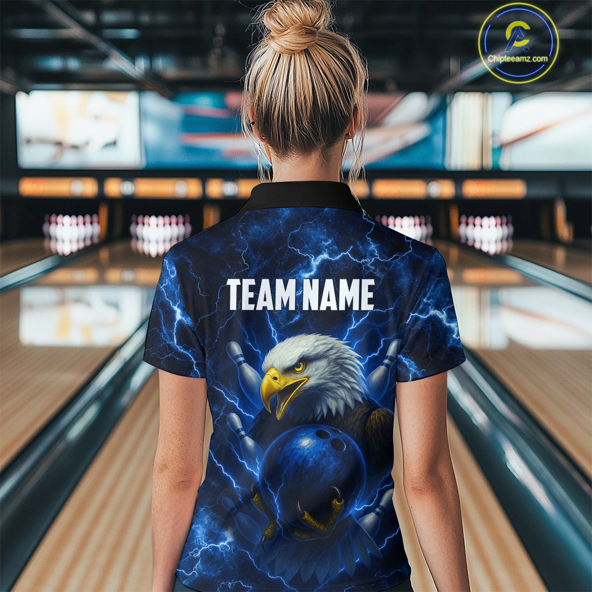Womens bowling shirts Custom Eagle blue lightning thunder Bowling Team Jersey, gift for Bowlers NQS10336