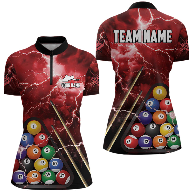 Personalized 3D Pool Ball Thunder Lightning Red Billiard Shirts For Women, 8 Ball Billiard Jerseys TDM3716