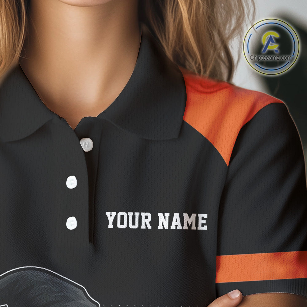 Black and Orange Funny pumpkin Golf Ball Women golf polo shirt Custom Halloween team ladies golf wear NQS10778