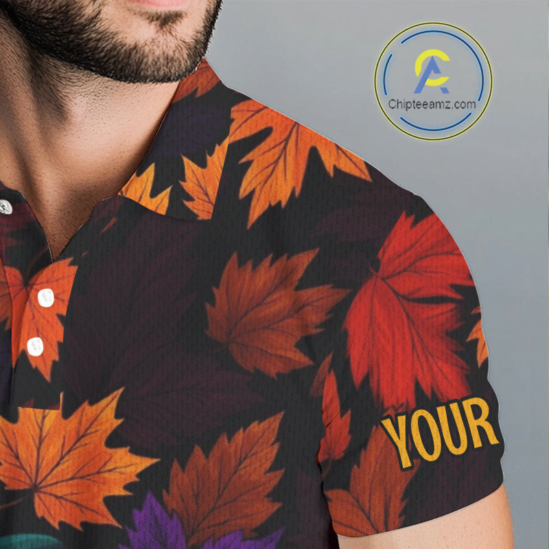 Golf Turkey Thanksgiving Mens Golf Polo Shirt Orange Autumn Leaf Custom Golf top For Men Golf Gifts NQS10637