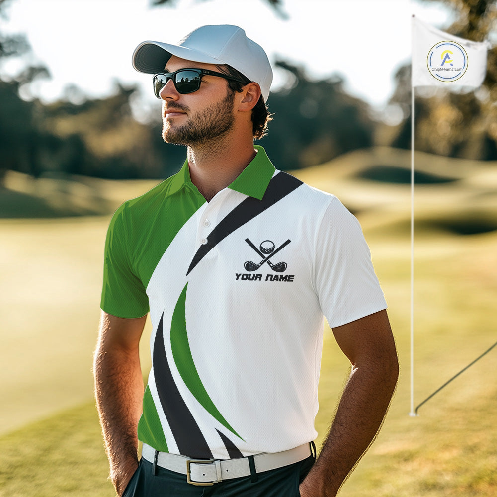 Green and White Men golf polo shirt Custom golf attire for men, gifts for golf lovers NQS10664