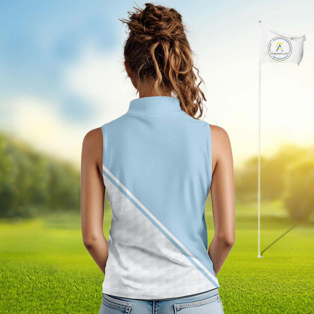 Light Blue and White Sleeveless Golf polo shirt Custom ladies's golf outfit, unique golf gifts NQS11112