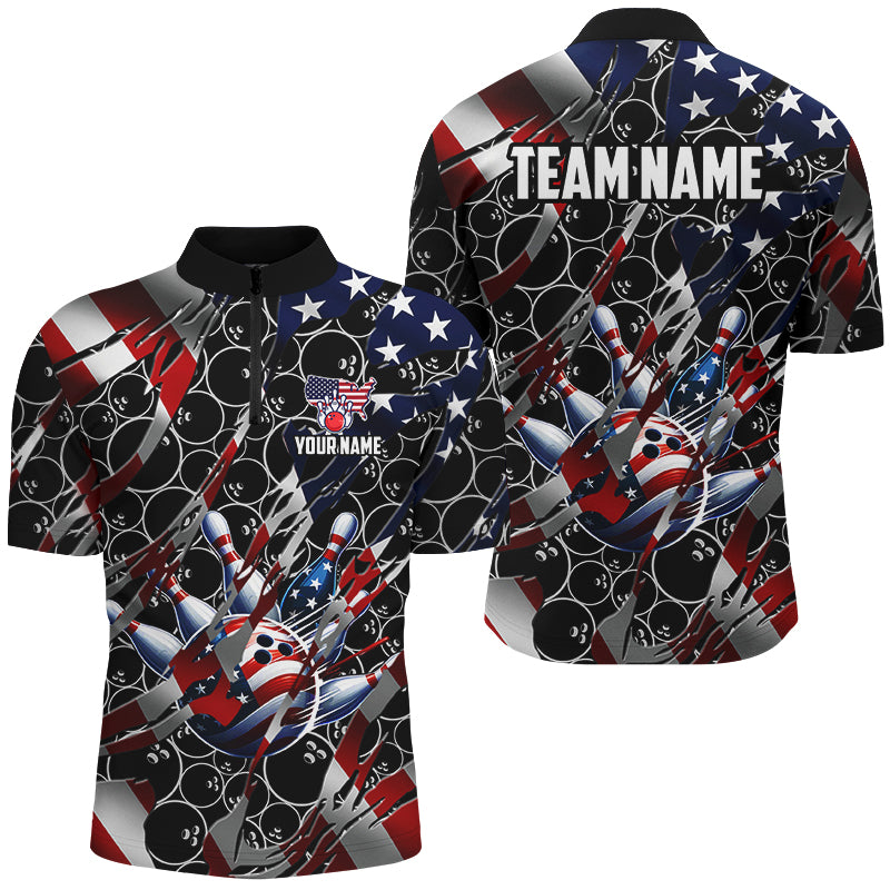 American flag black bowling camo Mens bowling shirts Custom patriotic Bowling Team League Jerseys NQS8550
