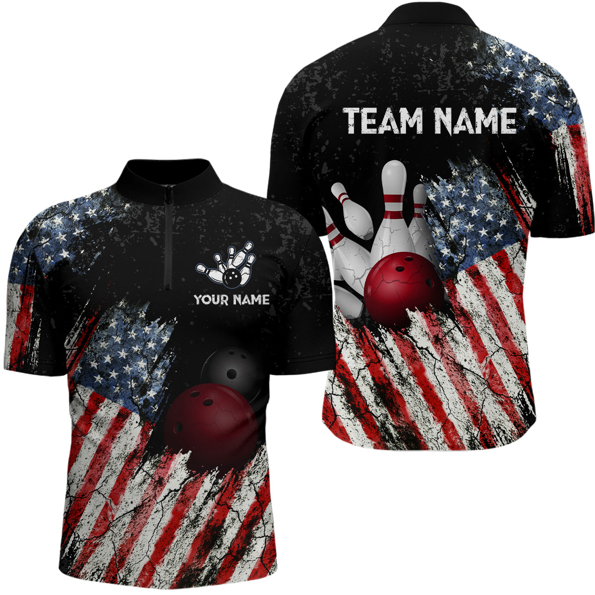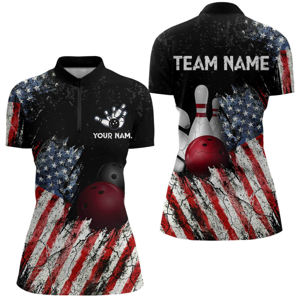 American Flag Bowling Jersey Men And Women Custom Bowling Team Shirts Unisex Bowling Polo Quarter-zip CP25