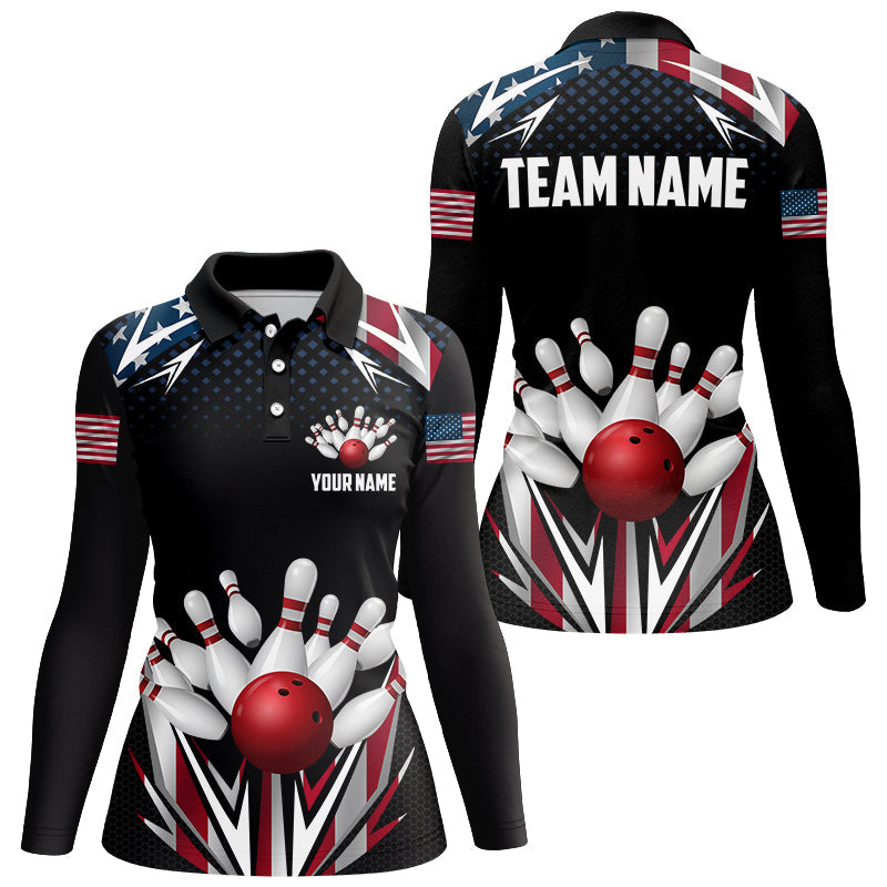 American flag Bowling Polo, Quarter zip shirts For Women Custom patriotic bowling team jerseys outfits NQS8689