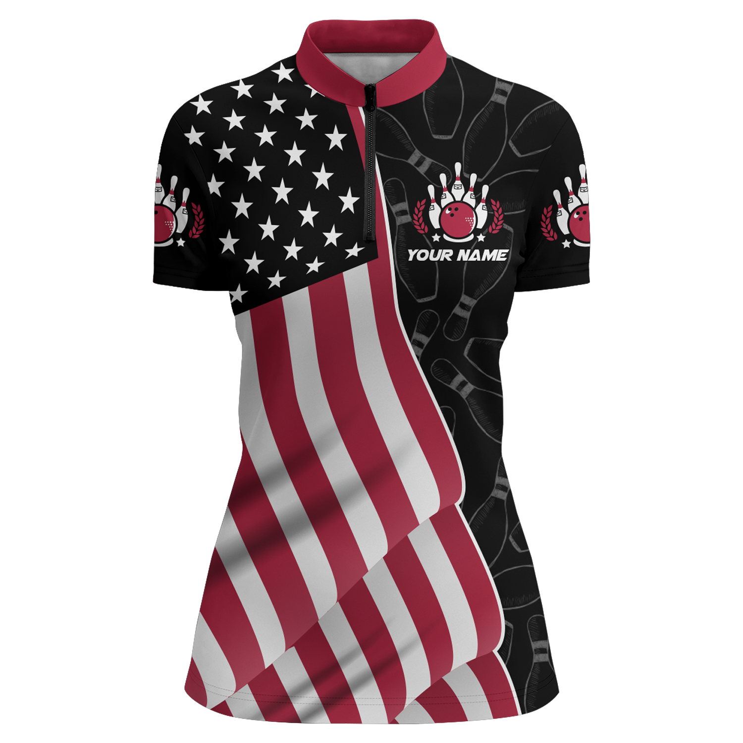American Flag Bowling Shirts Women Team Bowling Jersey Custom Black Bowling Quarter-Zip Shirt BDT372